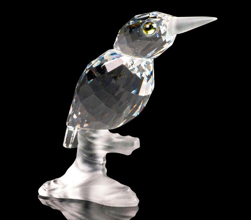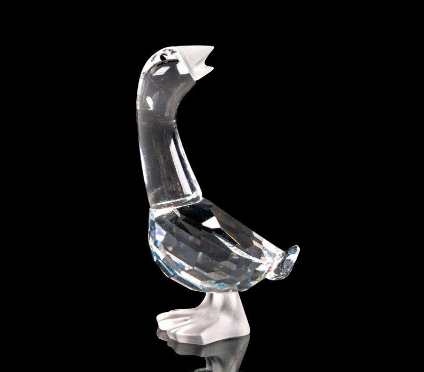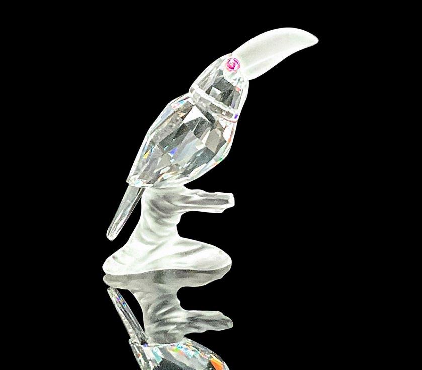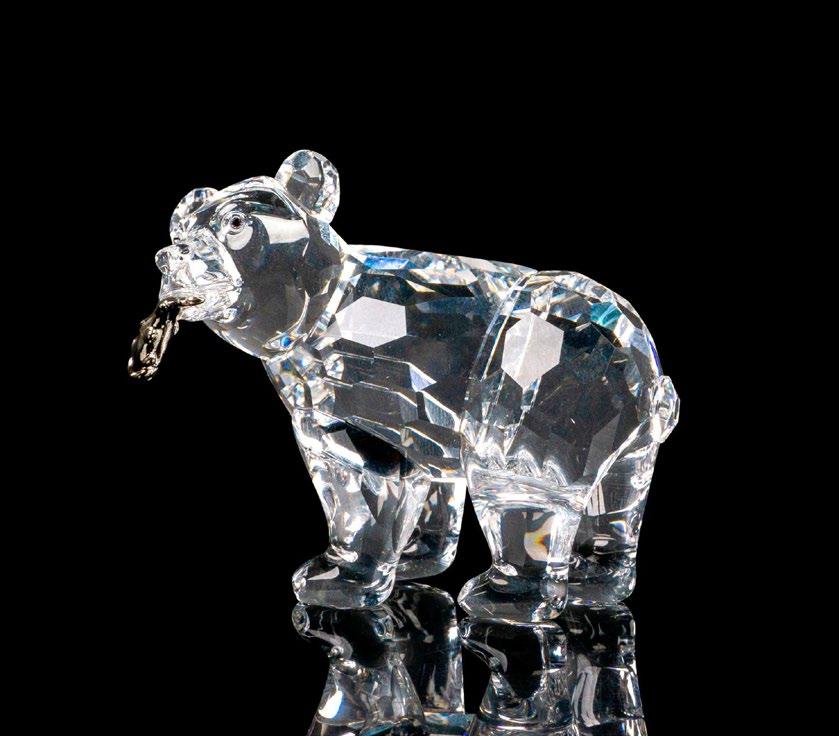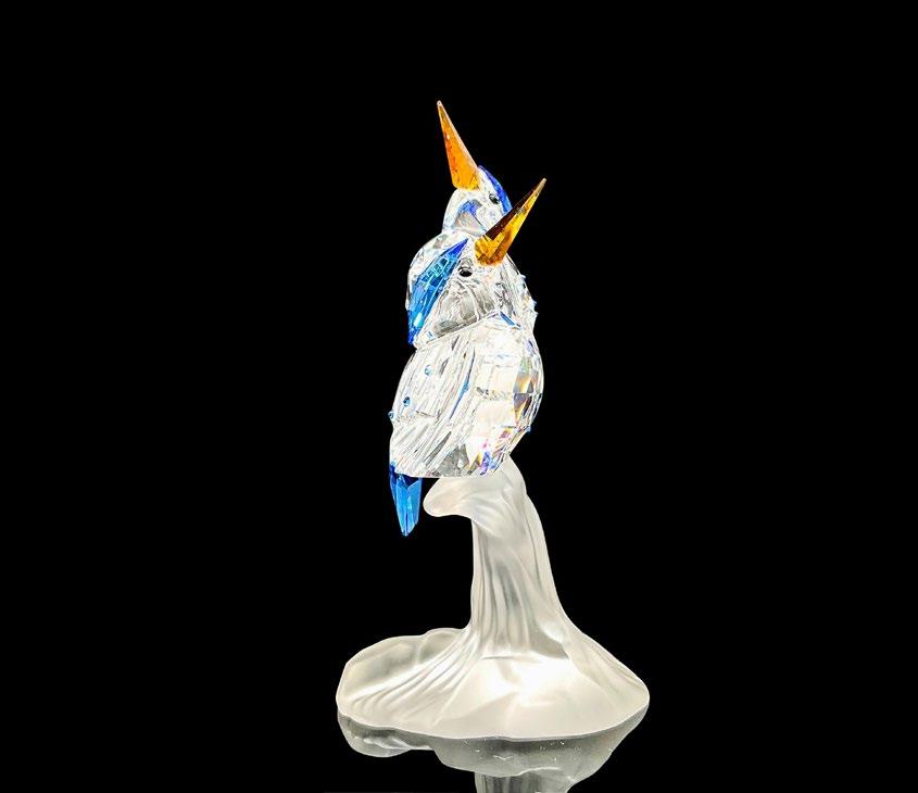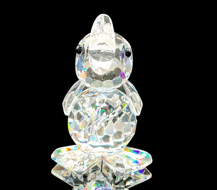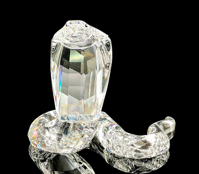 This fierce snake was part of the “African Wildlife” collection and is made from clear facetted crystal, with a rhodium forked tongue. This item has its original box with measurements 4”H x 5”dia. Certificate of Authenticity included.