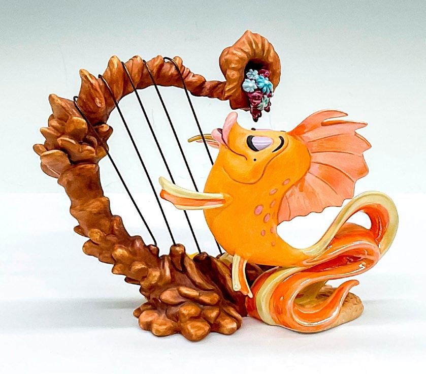 This stunning sculpture from Disney’s classic movie Fantasia, depicts the Autumn Fairy surrounded by dancing vines and flowing leaves. It is titled The Touch of an Autumn Fairy; it is constructed of porcelain and bronze with opalescent finish. Walt Disney Collection marked on the base. This item has its original box which measures 12”L x 13.5”W x 14”H. Certificate of Authenticity included.