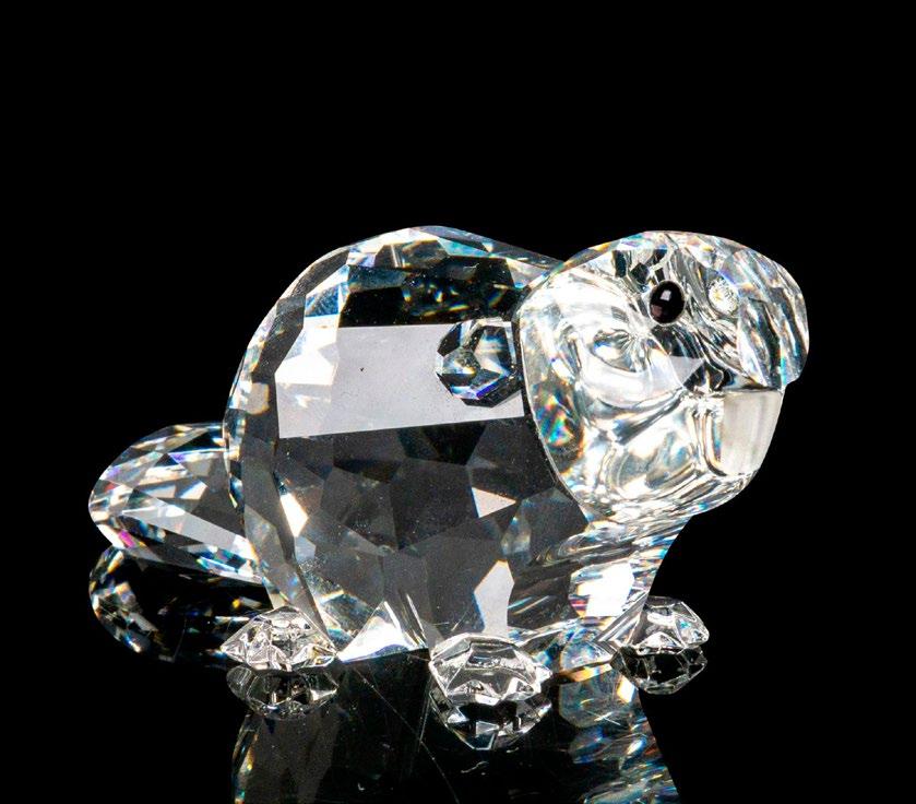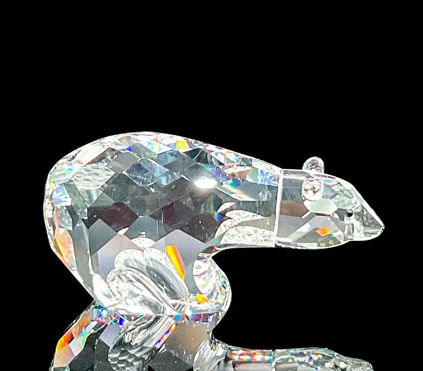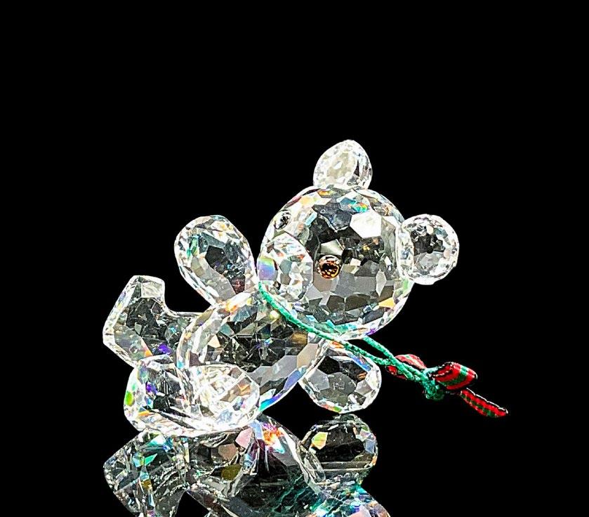 Part of the Pioneers collection. Lead crystal glamorous mice made from clear faceted crystal with jet crystal eyes. Swarovski etched backstamp. This item has its original box. Box measures: 3.25”W x 2.5”H.