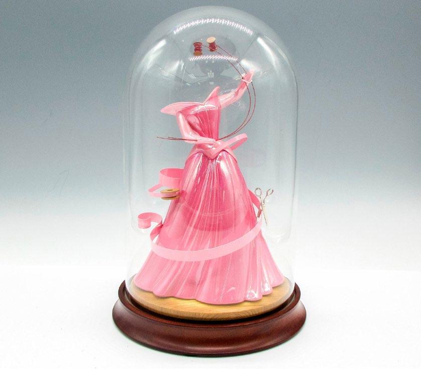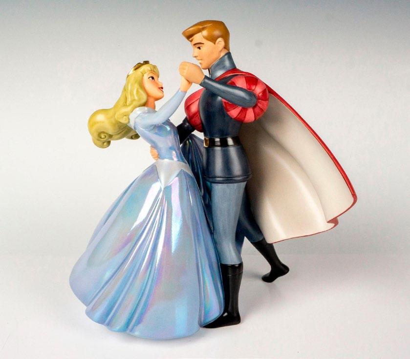 Classic representation of gown worn in Sleeping Beauty. Walt Disney Classics backstamp. Limited edition 3307/5000. Includes glass dome and pedestal bases. This item has its original box: 13”L x 9”W x 8”H. Certificate of Authenticity included. Largest piece: 5”L x 5”W x 9”H.