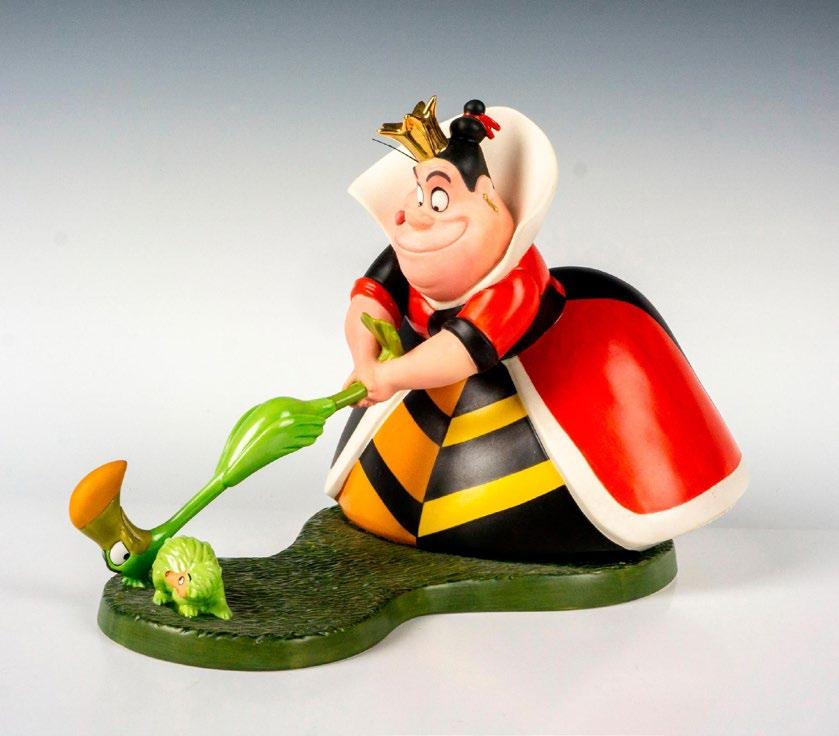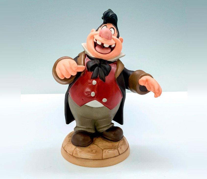 A porcelain figure of the King of Hearts holding his heart staff from Disney’s Alice in Wonderland. Walt Disney Classics Collection backstamp. This item has its original box. Certificate of Authenticity included. Dimensions of the original box: 7.5”L x 5”W x 3.5”H.