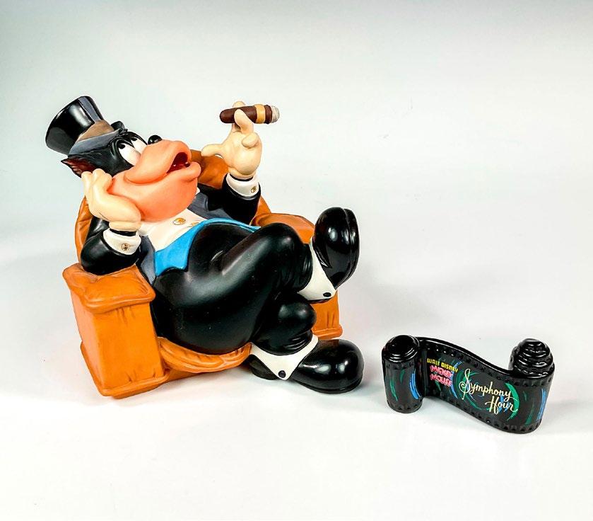 Constructed with a delightful combination of cast metal and porcelain, this whimsical figurine brings the wacky character of Goofy from the Disney Classic Symphony Hour to life, offering a playful and fun addition to any Disney collection. Gold Signature Disney backstamp. This item has its original box which measures 8”L x 7.5”W x 11”H. Certificate of Authenticity included.