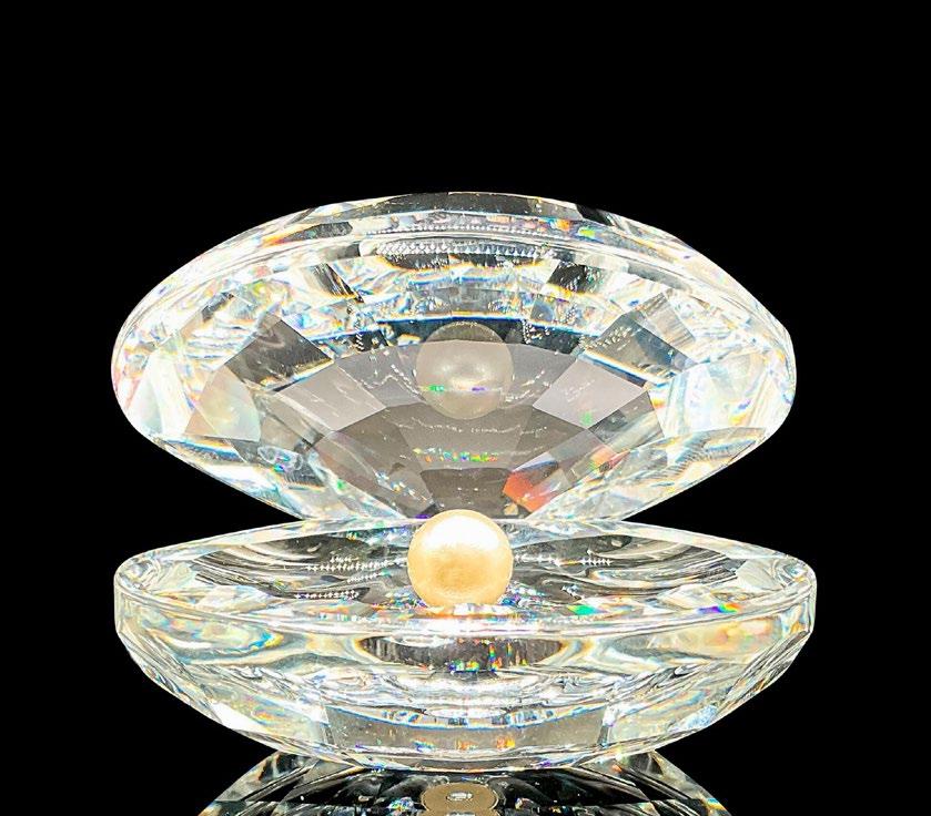 A 2007 renewal membership gift of a clear seashell. Swarovski etched marking. This item has its original box: 4”L x 4”W x 1.25”H.