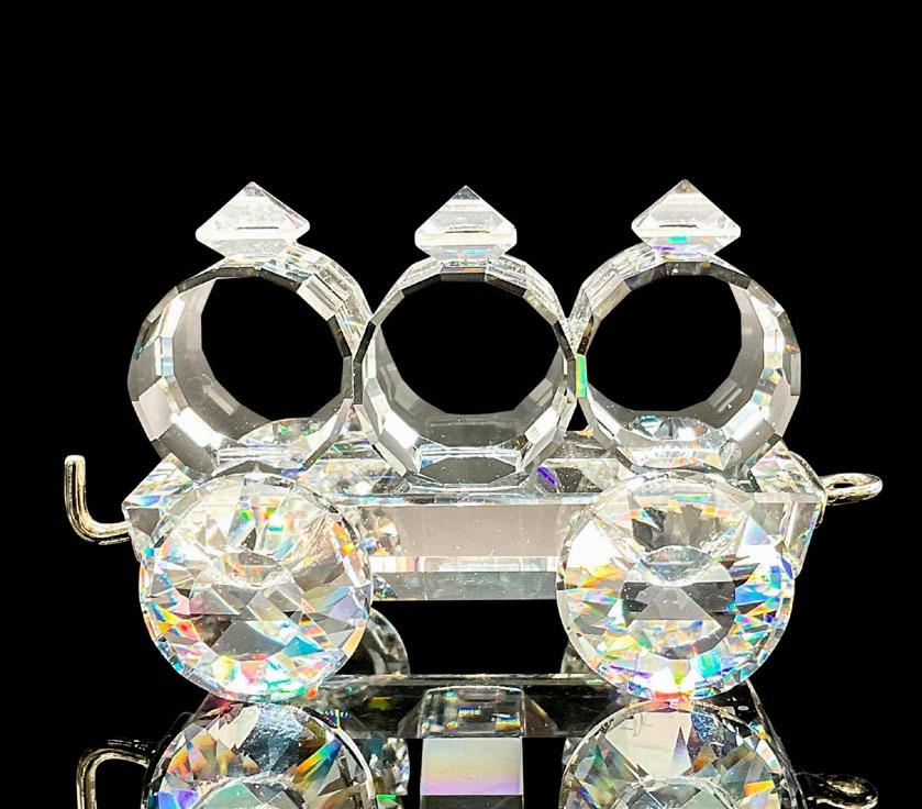 2 faceted clear train pieces for the Silver Crystal Express, which is part of the ‘When We Were Young’ collection. Swarovski laser etched markings on the bases. Locomotive: 2.5”L x 1.25’W x 1.5”H. Tender car: 1.5”L x 1”W x 1”H.