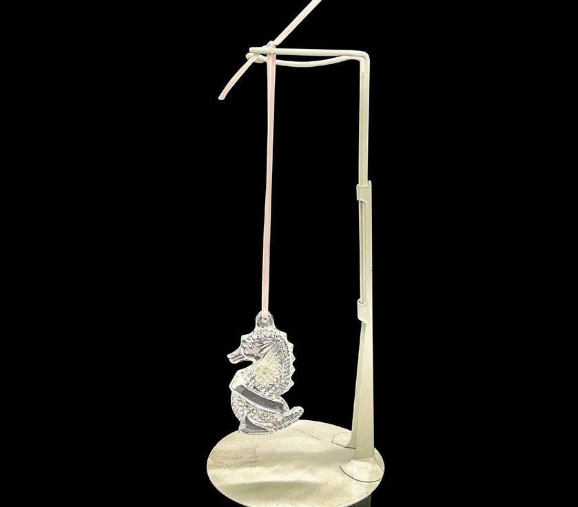 Part of the Crystal Melodies’ collection. Depicts a clear string instrument. Includes a rhodium metal stand. Swarovski laser etched marking on the base of the lute. Stand: 1.5”L x 0.75”W x1.75”H.