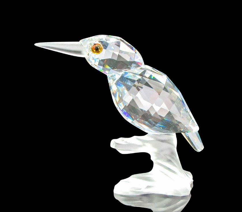 Whimsical collection of three figurines including butterfly on a mound, tiny swan, and many faceted SCS orb that acts as a sign plaque. Etched Swarovski backstamp.