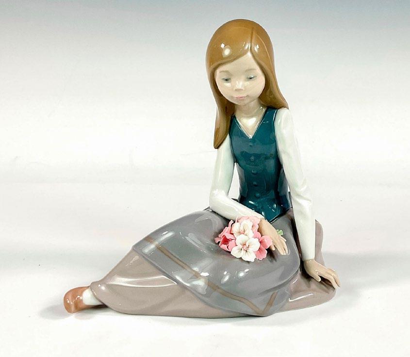 Glossy finish; Lladro backstamp. Includes original box. Box measures: 8.5in L x 5.75in W x 5.875in H.