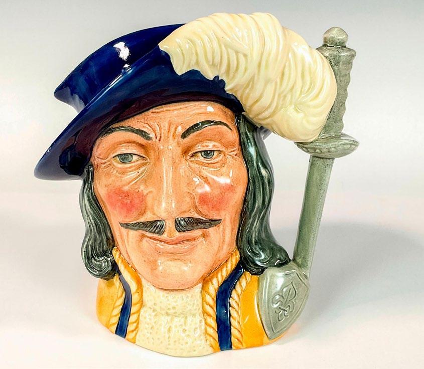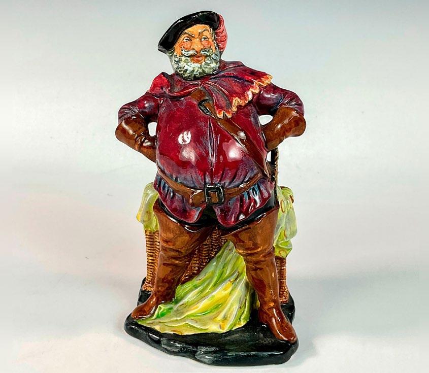Variation One. Rose tunic; black hat, rose plumes; grey beard. Series: Characters From Literature. Royal Doulton backstamp.