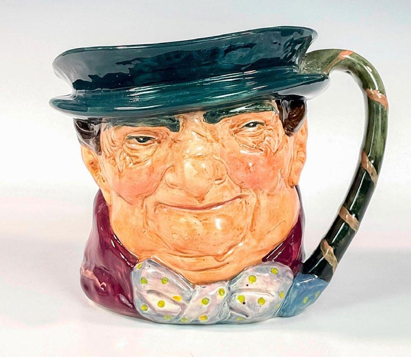 Variation One. Black hat; dark green jacket; tan shirt. These jugs were commissioned by Kevin Francis Ceramics Ltd. Issued in 1991 in a special edition of 1,500 pieces. Note the Kevin Francis Ceramics characteristic of the left-handed jug. Series: The Collecting World. Royal Doulton and Kevin Francis backstamp.