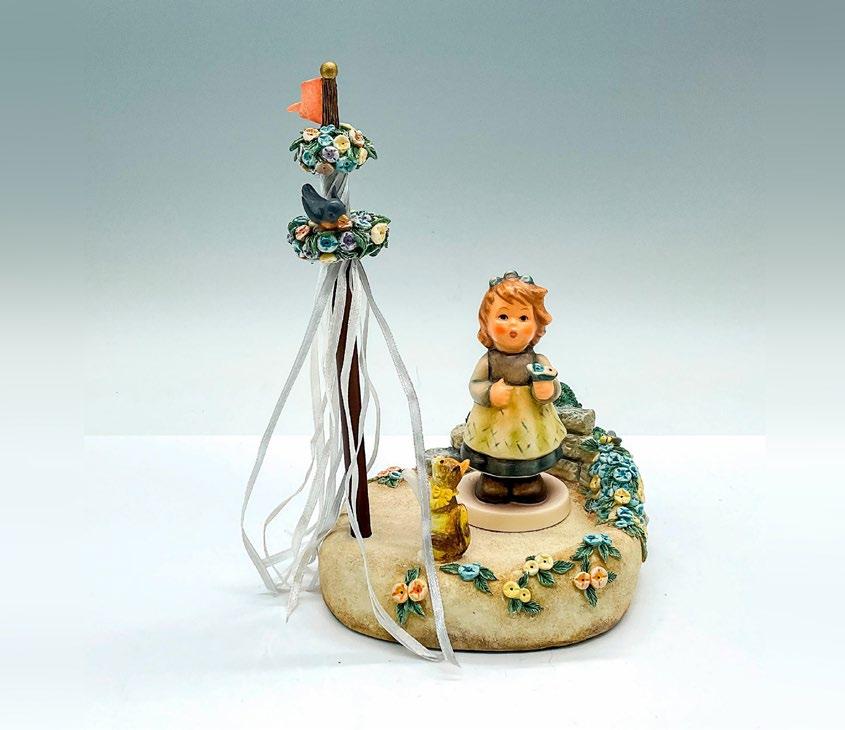 Hand painted figure From the Heart (HUM 761) with limited edition HummelScape sculpted base Spring Celebration. Goebel Hummel markings. From the Heart: 1.5”L x 1.5”W x 3.5”H. Spring Celebration: 5.5”L x 4.75”W x 7.25”H.