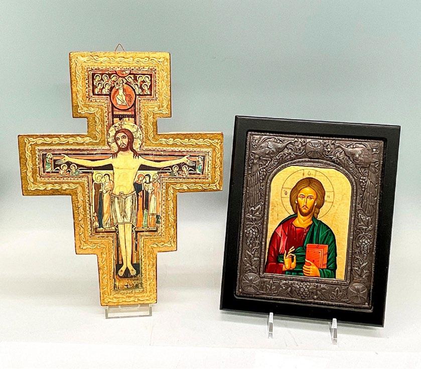 This Castel Mezuzah consists of a gold embossed lithograph encased in a 24 karat gold plated brass frame and designed in the tradition of Sephardic artistry. Item is mounted in a self standing blue velvet wrapped plaque. This item has its original box. Certificate of Authenticity included. This item is one of an 1800 limited edition. Box measures: 3.75”L x 2”W x 7”H.