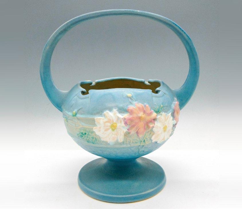 A hand painted vessel depicting an owl perched on a tree. Goto Original backstamp.