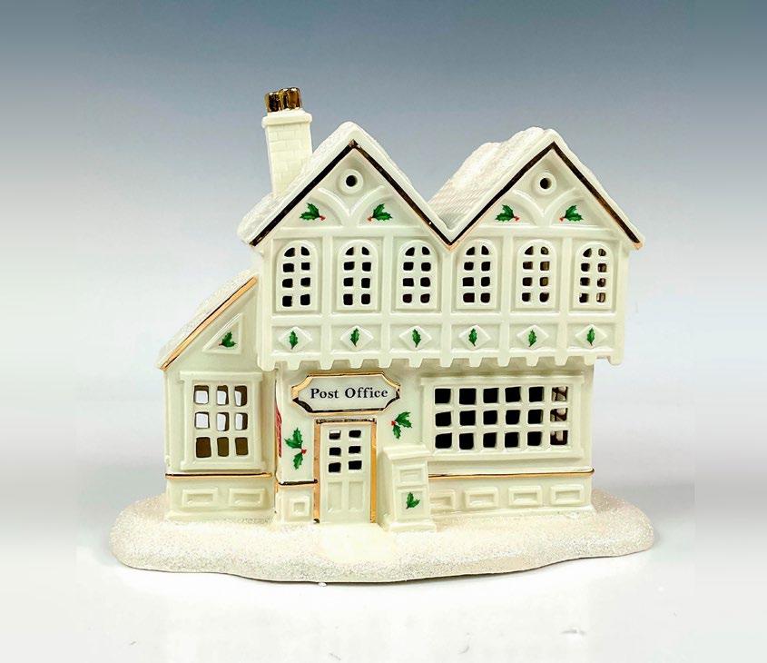 Ivory-colored porcelain figure with gilt accents. Depicting Santa and a young child reading a list. Lenox backstamp. This item has its original box: 10”L x 10”W x 8”H.