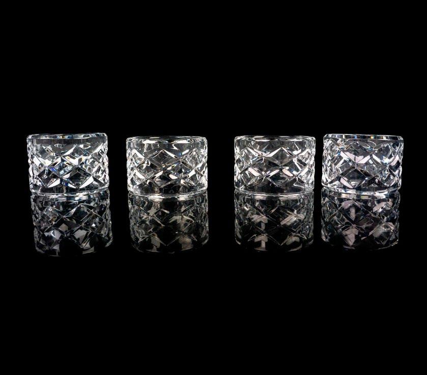 Clear blown glass rings decorated with crisscross and vertical design. Lenox etched backstamp.