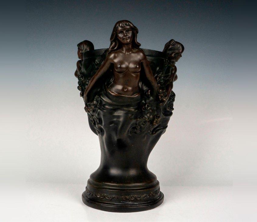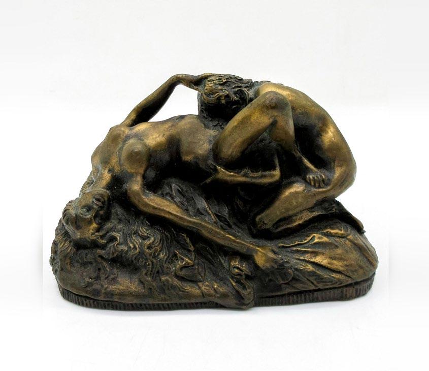 Depicting two ladies in an erotic position, French title ‘Deaux Jeunes au Plaisir’. Signed J.M. Lambeaux on the back. Josef Lambeaux (18521908) was a Belgian sculptor. His best known work is Temple of Human Passions, a colossal marble bas-relief.