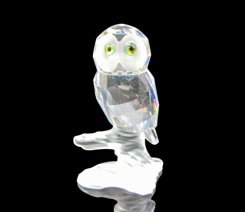 Part of the Up in the Trees collection. Clear crystal with frosted face, sitting on frosted branch. Swarovski backstamp.7621 000 003. This item has its original box: 2.5”H x 3.25”dia.