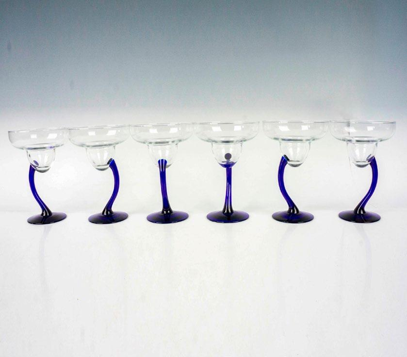 Cobalt blue with yellow crystal center and clear stem. Swarovski backstamp. This item has its original box: 2.5”H x 3.25”dia.