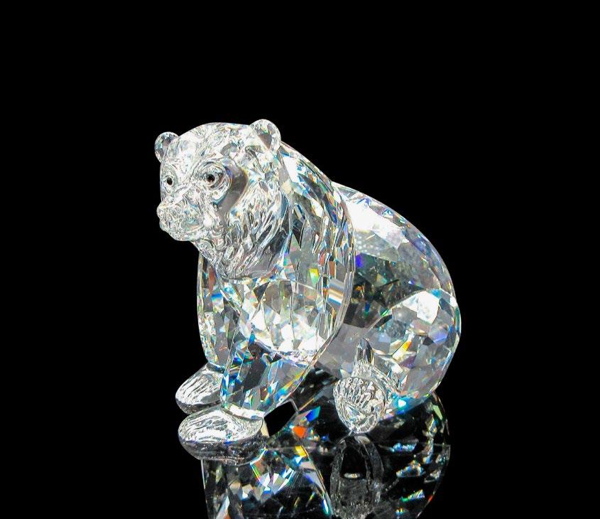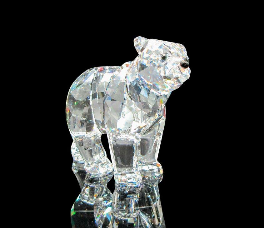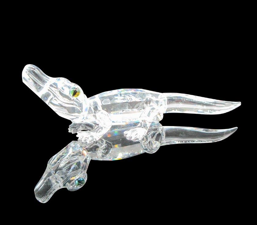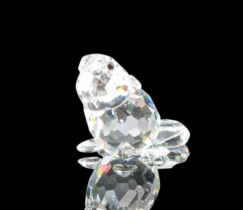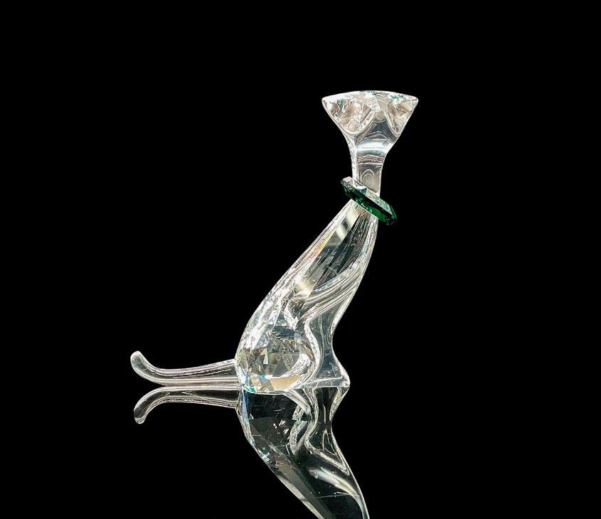 Figural is part of the Endangered Species collection. Clear faceted body with defined feet and tail. Eyes have yellow green coloration. Swarovski backstamp.