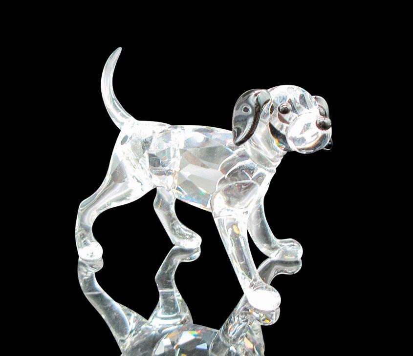 Pluto is part of the Disney Showcase Collection the first series of Disney pieces produced by Swarovski. All the pieces in the Collection bear the Swarovski and Disney logos. Pluto is made from clear crystal and has black eyes, nose, tail and nose. This item has its original box which measures 8”L x 5”W x 8”H. Swarovski etched backstamp.