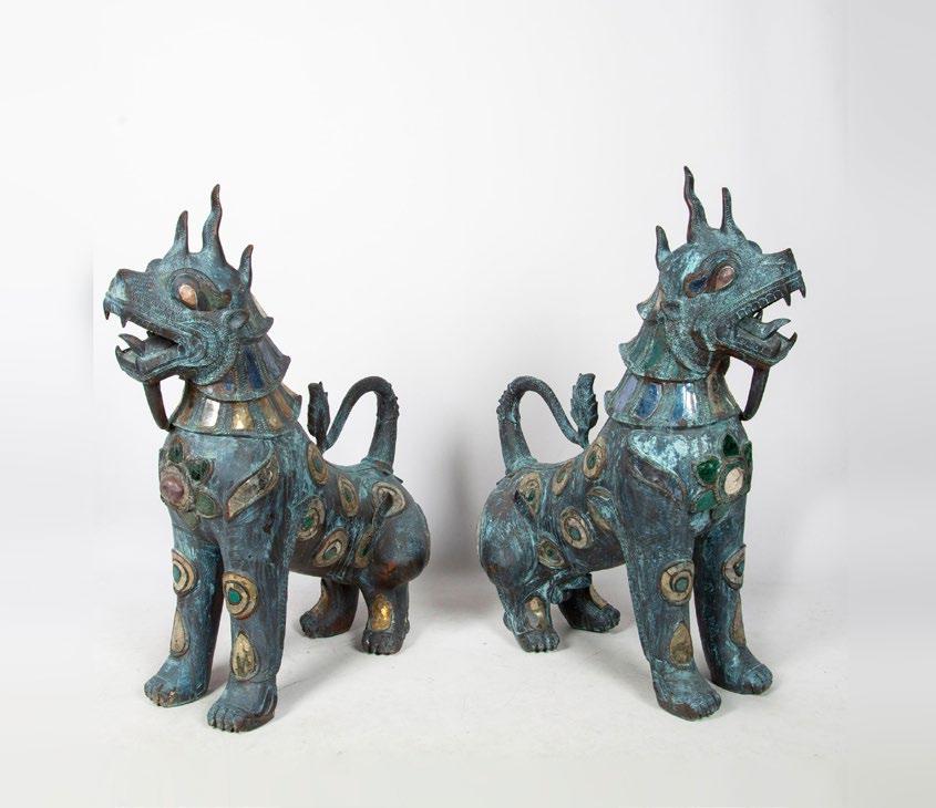 PAIR OF LARGE ANTIQUE BRONZE THAI FOO DOGS