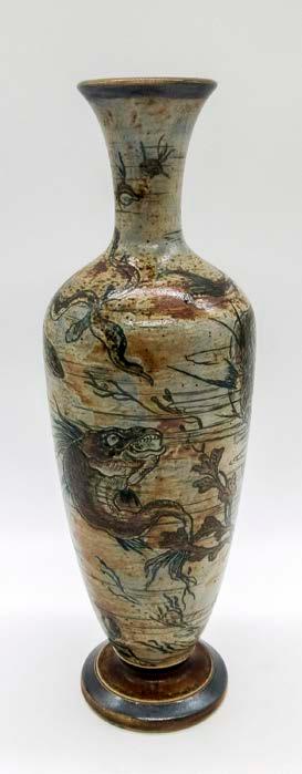 Impressed Doulton Lambeth to bottom base. George Tinworth's initials on the back.