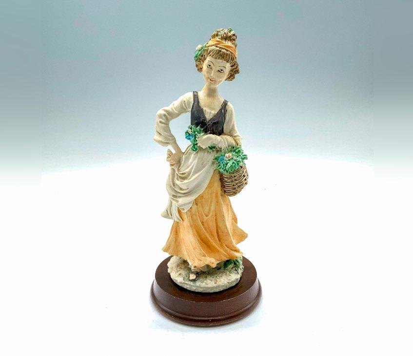 Yellow blouse; green waistcoat; dark burgundy skirt. Series: The Doultonville Collection. Royal Doulton backstamp.