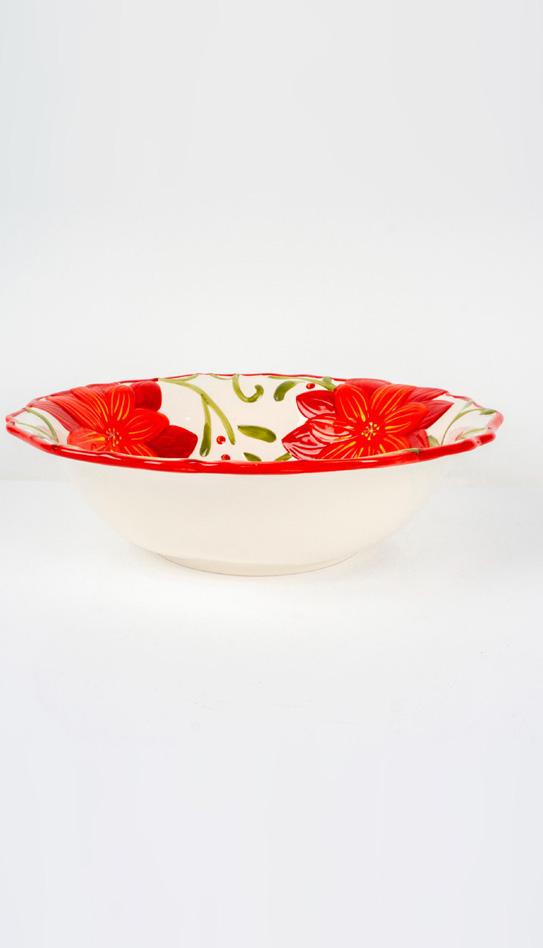 Earthenware by Johnson Brothers set of dishes including 2 large serving bowls, 12 individual cereal bowls, 2 oval serving bowls, 4 dinner plates, and 12 small bread plates. Largest piece measures 1”H x 10”dia. All dishwasher and microwave safe.