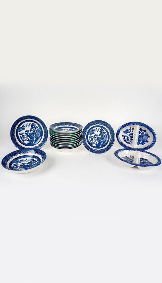 16PC CHURCHILL BLUE WILLOW TABLEWARE