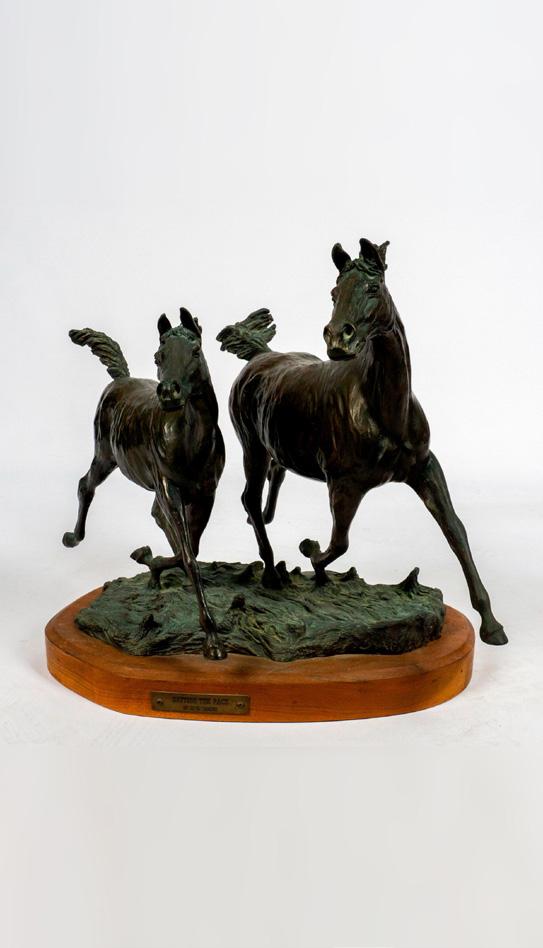 Titled: Tournament. Limited edition Giclee on paper. Artist signed and numbered lower right. Housed in dark wood frame with cream colored matte. Sight size: 18.5”H x 13.25”W. Frame size: 32”H x 26.25”W.