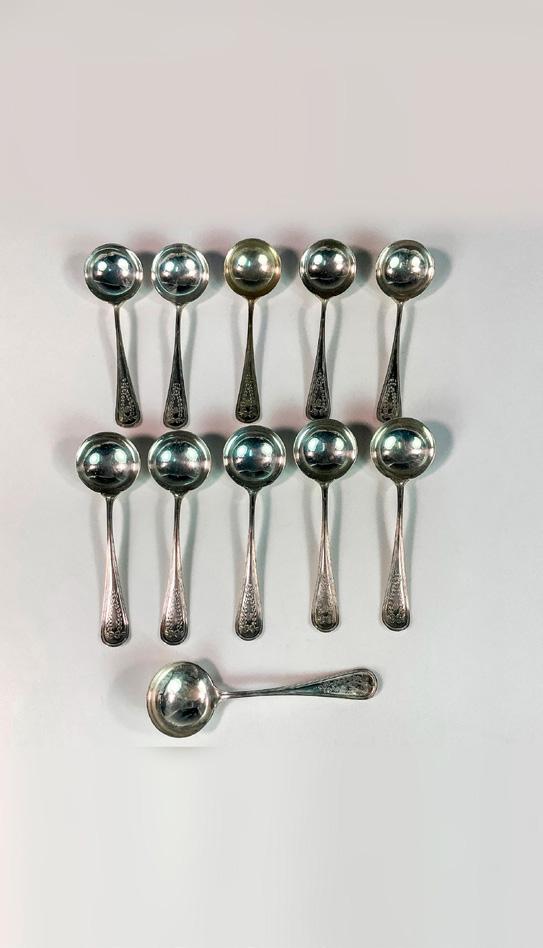 Two divided oval serving bowls, twelve individual cereal bowls, and two shallow vegetable serving bowls. Largest measures 10”L x 8”W x 3”H. Churchill backstamp.