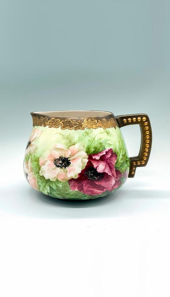 Unmarked, unsigned jug with a nice country cottage floral transfer design.