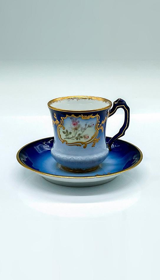 Tiny blue painted ruffled edge plates with Dutch farm scenes. Intended for use with a Child’s tea set. Backstamped R.C. Versailles, Delft Germany.