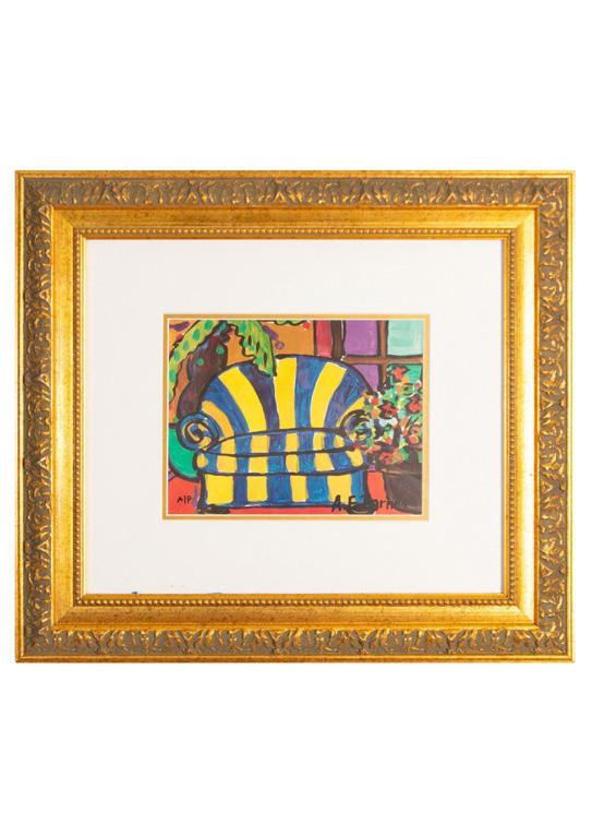 Artist Proof signed lithograph. Artist signature in bottom right. Housed in ornate gold frame with cream colored matte. Sight size: 7.5”H x9.5”W. Frame size: 19”H x 21”W.
