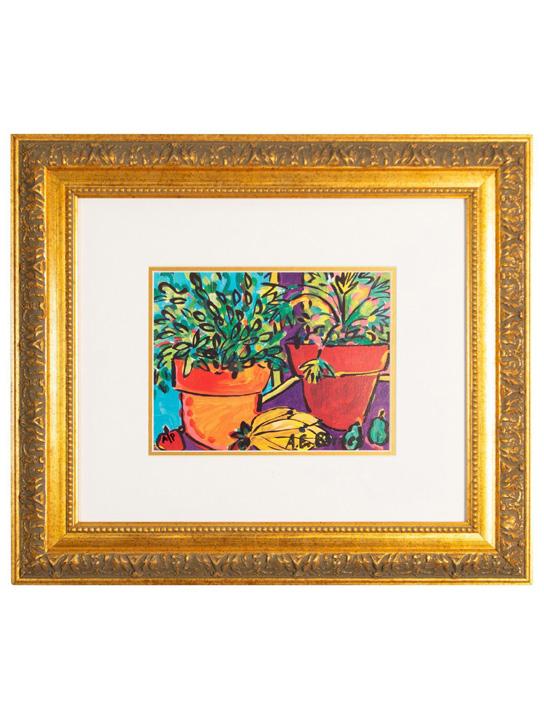 Limited edition signed lithograph. Artist signature in bottom right. Housed in ornate gold frame with cream colored matte. Sight size: 9.5”H x7.5”W. Frame size: 21”H x 19”W.