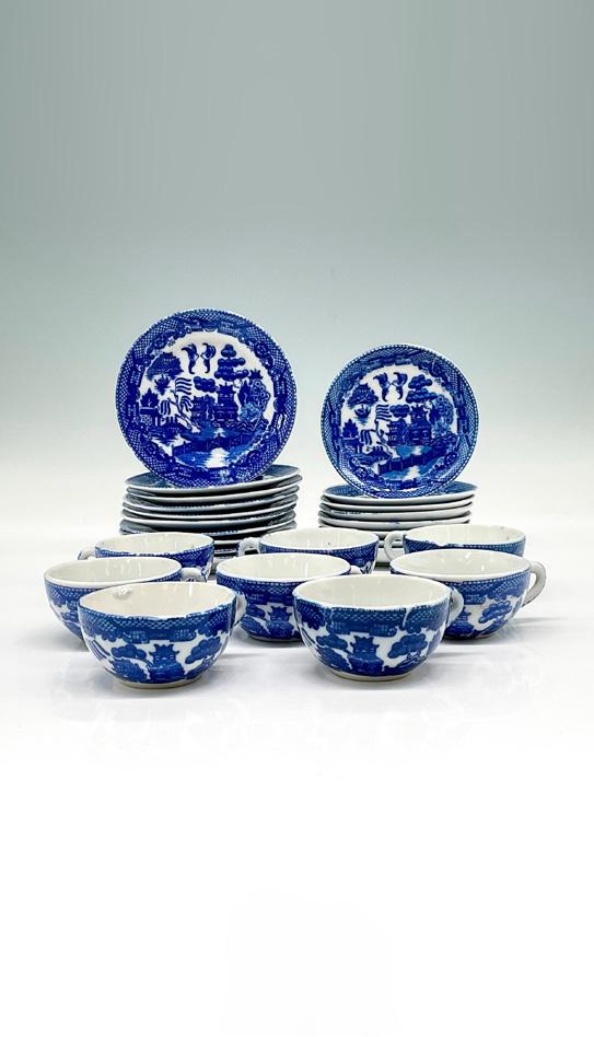 26PC BLUE WILLOW CHILD’S TEA SET TEACUPS AND SAUCERS