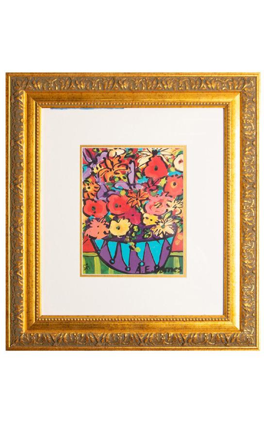 A.E. BARNES (AMERICAN, 20TH C.) LITHOGRAPH, SUMMER BOUQUET