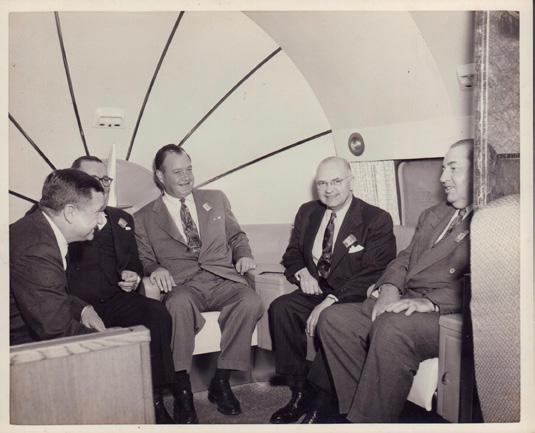 Rare black and white photo; men from Douglas Aircraft Company inside the ‘Golden Falcon’ DC-8 Jet.
