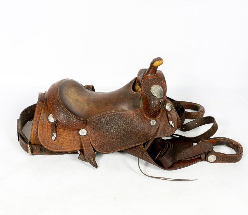 Beautiful heavy western saddle by Rocky’s Custom Saddlery.?Made of finely tooled leather with basket weave pattern, suede seat,?silver mounts and conchos. Back cinch and two latigos attached. Full double dee rigging. 28” skirt with 16” seat. Semi quarter horse bars and 8” gullet. Brand stamped?into the tree with the numbers 0184 and 0302.