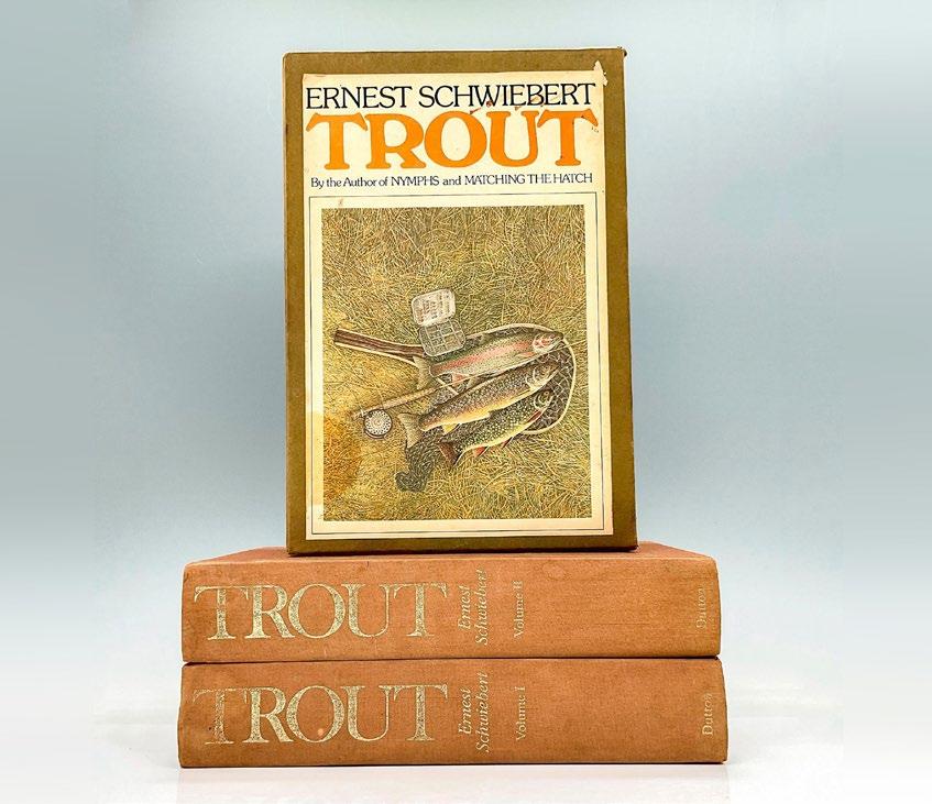 Collection of seven books including, Standing in a Rive Waving a Stick, Dances with Trout, Even Brook Trout Get the Blues, Trout Bum, There the Trout are All as Long as Your Leg, The View from Rat Lake, Fisherman’s Spring. All with black/white pages, the shortest book 84 pages and the longest 235 pages. The largest book measures 5.5”L x 0.75”W x 8.5”H.