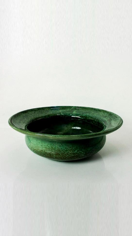 Glazed; decorated with reliefs of a pink bird and white cherry blossom. Artists’ signatures.