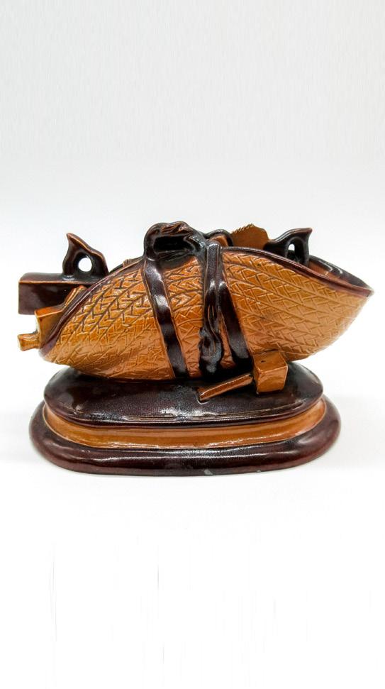 Very rare prototype figural jug. Submarine handle. Navy blue and white coloration.