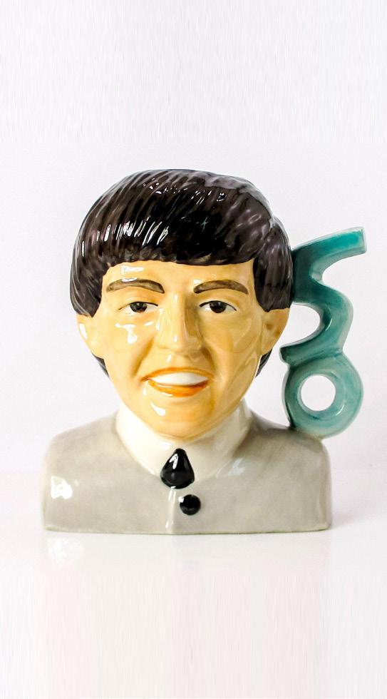 A rare hand painted bust of George Harrison. 50th Anniversary edition. Peggy Davis backstamp.