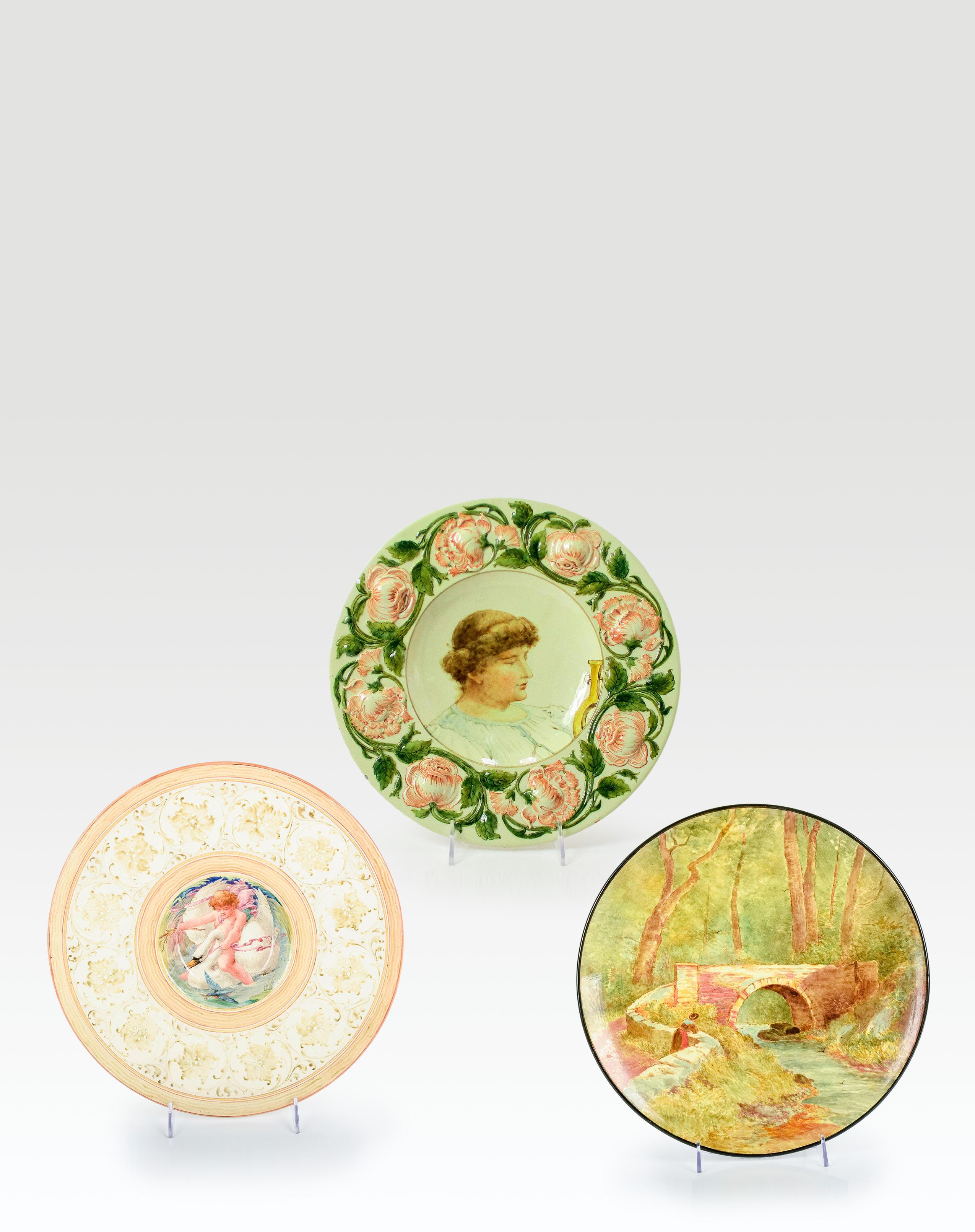 High relief classical female figures and cherubs. Wedgwood Made in England backstamps.