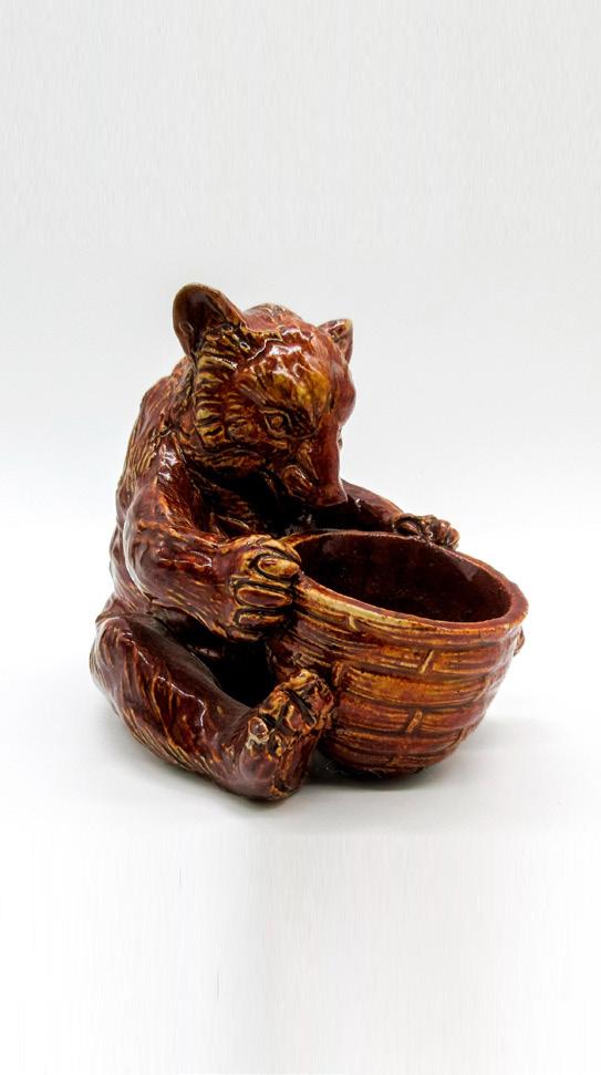 Very rare prototype figural jug. Airdrop handle. Olive-green and red coloration.