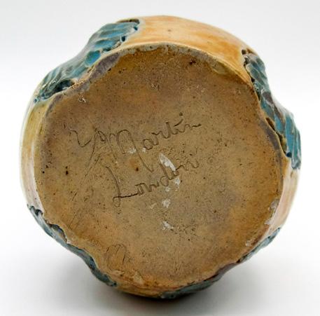 Glazed stoneware, with floral decoration partly in relief and gold accents. Impressed artist monogram and Doulton Lambeth Carrara backstamp.