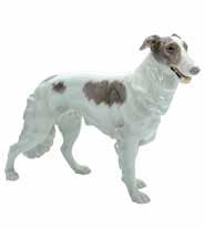 Porcelain figurine modeled as an Inuit man standing with a pensive appearance and adorable dog between his legs. Brown, red, yellow, and purple coloration. Base has gold gilt edges and Gronland impressed to front. Modeled after Carl Martin-Hansen’s National Costume series. Royal Copenhagen backstamp and number 12225 marked to base.