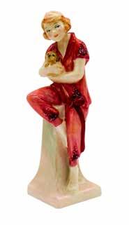 Limited figure of a boy in a golden robe clutching a black and gilded umbrella. 1145; Royal Copenhagen backstamp.