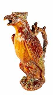 Scandinavian footed pitcher with warm brown and cream earth tone marbled coloration. Perfect home decor for any room. Tail of animal atop piece becomes handle. Made in Denmark. Royal Copenhagen backstamp.