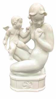 Blanc de chine porcelain figure of Venus holding cupid on her knee. Venus holding an apple. Cupid holding his bow. 1034; Dahl Jensen DJ Copenhagen backstamp. 1034; Dahl Jensen DJ Copenhagen backstamp.
