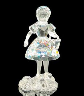 Adorable figurine with frosted arms and face. Crystal basket with frosted handle. This item has its original box: 5.75”L x 5.75”W x 5”H.